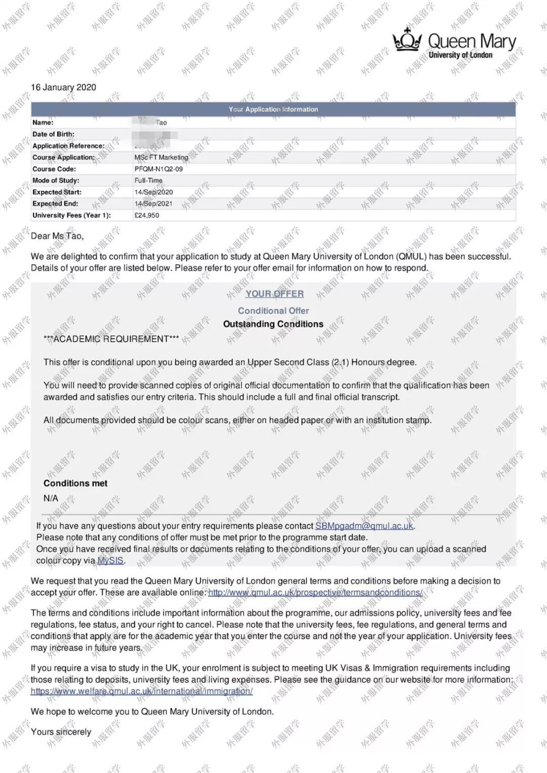 英国伦敦玛丽女王大学管理学专业硕士offer