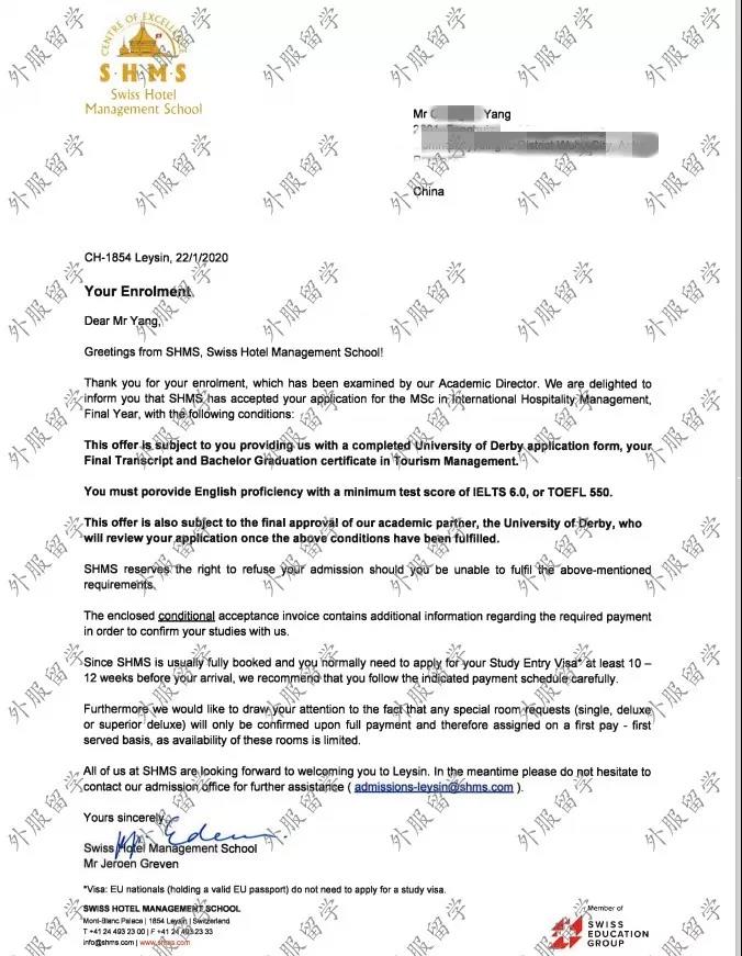 瑞士酒店管理大学国际酒店管理专业双硕士offer
